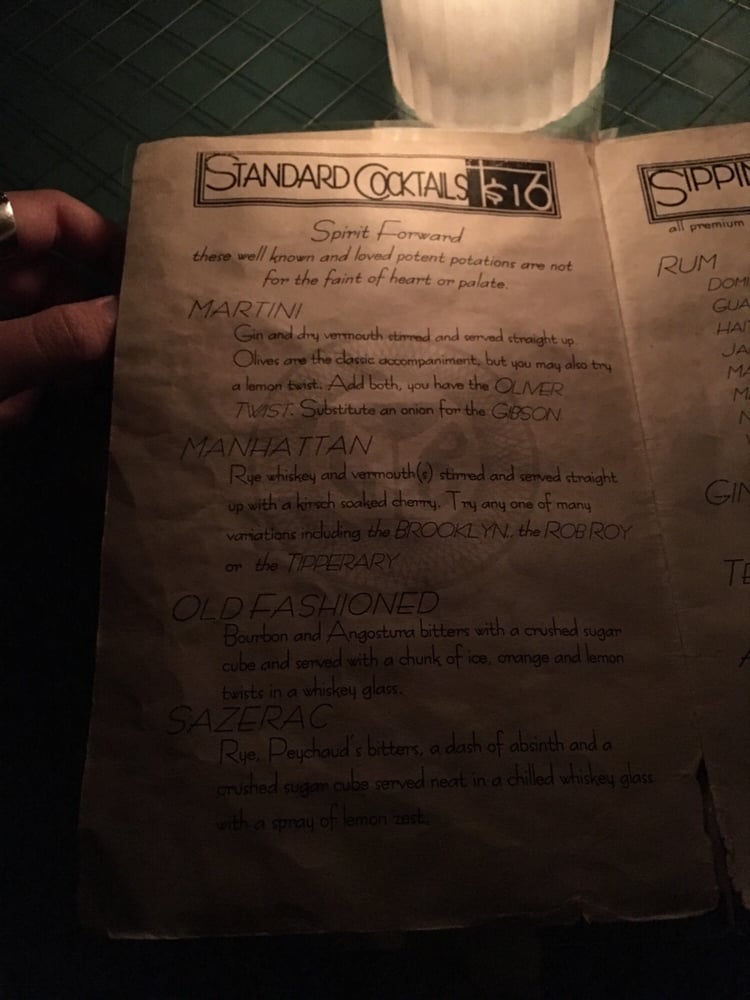 Old overholt rye, paychaud's bitters, white sugar cube, absinthe